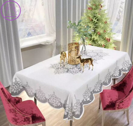 Ubrus žakárový bílý běžník vánoční 130x180cm W-Girlanda SKLADEM