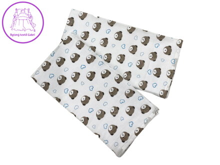 Látkové pleny jsou jemné, měkké a prodyšné, se vzorem medvídka a srdíček. Rozměr pleny je 70x70 cm, balení obsahuje 5 ks.