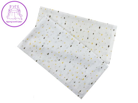 Látkové pleny jsou jemné, měkké a prodyšné, se vzorem kapek. Rozměr pleny je 70x70 cm, balení obsahuje 5 ks.