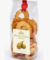 Z českých hrušek!Používají se k přímé konzumaci.Průměrné výživové hodnoty ve 100 g:Energetická hodnota: 1363 kJ/326 kcal; Tuky: 1,5 g, z toho nasycené mastné kyseliny: