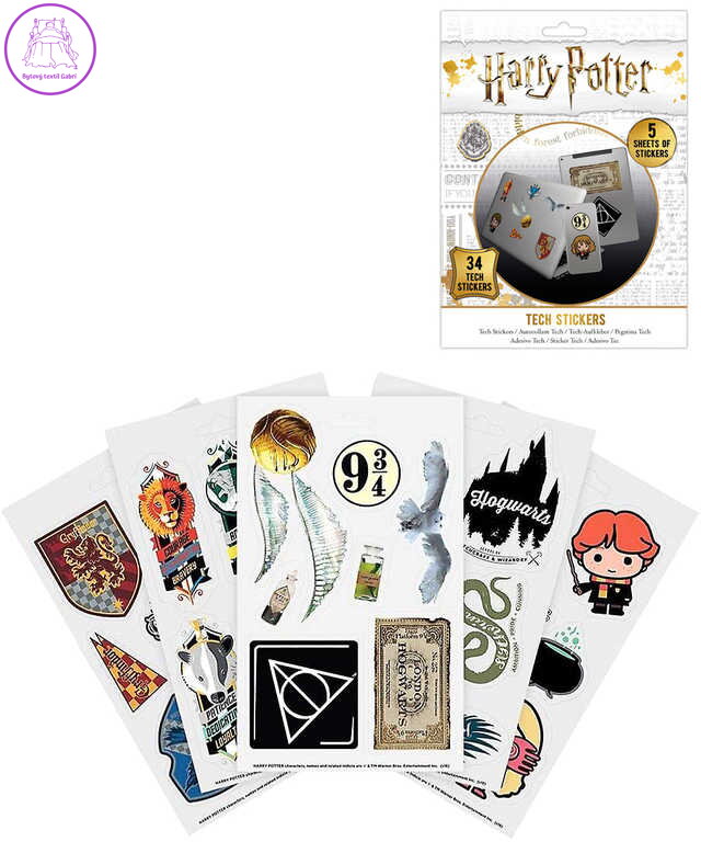 Sada obsahuje 5 archů s celkem 34ks vinylových samolepek obrázků na motivy knih a filmů o Harry Potterovi, studentovi čar a kouzel z Bradavic. Samolepkami si můžete vyzdobit např. váš mobilní telefon,