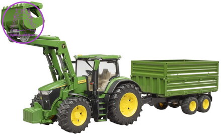 závěsu traktoru lze pomocí stávajícího čelního nakladače používat a současně nakládat i všechny ostatní přívěsy ze zemědělské tematiky BRUDER.