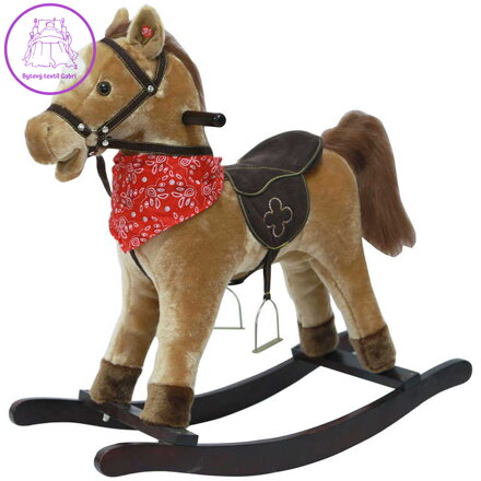 DŘEVO Kůň plyšový houpací 71cm hnědý řehtá na baterie Zvuk