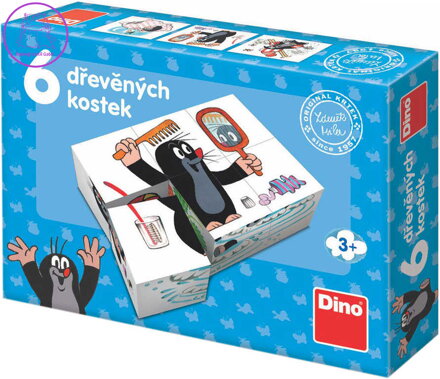 DINO DŘEVO Kostky obrázkové Krtek (Krteček) 6ks kubus *DŘEVĚNÉ HRAČKY*