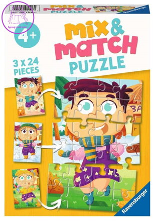 Míchej a skládej! Můžeš poskládat motivy podle obrázků a nebo vzájemně kombinovat a míchat jednotlivé dílky ze všech tří puzzle a vytvářet nové legrační postavy. To bude zábava! V jedné krabičce najdete tři puzzle pro děti s 24 dílky.