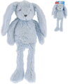 Tento plyšový králíček v modré barvě je vyroben z jemného plyšového materiálu. Je ideální pro malá miminka, ale může být určen pro všechny věkové skupiny. Králík má dlouhé uši a dlouhé nohy. Tento roztomilý zajíc se stane nerozlučným kamarádem vašeho děťátka.