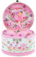 Krásně dekorovaná kartonová hrací skříňka - krabička na šperky, s panenkou vílou. Uvnitř šperkovnice je zrcátko a panenka, která po natažení klíčku tančí a hraje. Baleno v igelitovém sáčku.