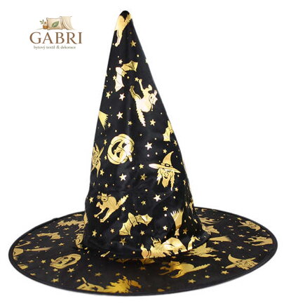 Rozměry dětského čarodějnického klobouku: průměr klobouku je 30 cm a výška 38 cm.