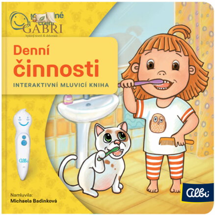Interaktivní mluvící mini kniha provede děti od 2 let každodenními činnostmi. Děti stráví jeden den se sourozenci Honzíkem a Barborkou. Vstanou s nimi z postýlky, vyčistí si zoubky, dají si něco dobrého k obědu a pohrají si. Všechny činnosti v knize doprovází veselá písnička. V knize nechybí dialogy, říkanky a samozřejmě ani jednoduché zábavné kvízy. Kniha Denní činnosti obsahuje přes 400 zvuků a textů.
