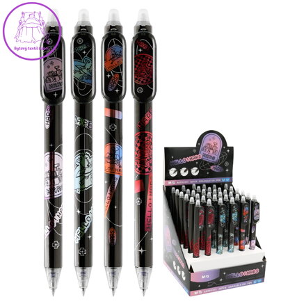 Gelový přepisovatelný roller se speciální náplní, díky které lze psaný text vymazat pomocí plastového zakončení pera a znovu přepisovat.