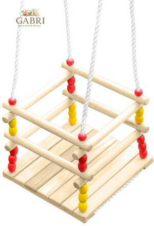 Dřevěná houpačka s hrazením, o které se děti mohou opřít a pevně se jej přichytit. Pevná lana jsou na koncích opatřena kroužky k zavěšení a jejich délku lze pomocí kovových průvleků snadno nastavit. Houpačka je vyrobena z pečlivě opracovaného masivního dřeva a je dodávána ve složeném stavu, připravena k zavěšení. Pro závěšení na bezpečnostní (nejlépe točivé) háky. (Háky nejsou součástí balení).