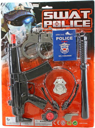 Akční plastová sada pro všechny malé policisty a strážce zákona, obsahující samopal, pouta, obušek a další k zásahu nezbytnou výbavu. Baleno na kartě.