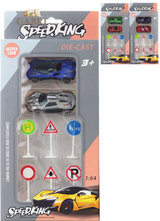 Auto závodní kovové 1:64 set 2ks s dopravními značkami 3 druhy Čtěte více