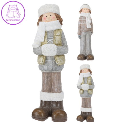 Postavička dívky, chlapce v zimním oblečení v šedé a béžové barvě.