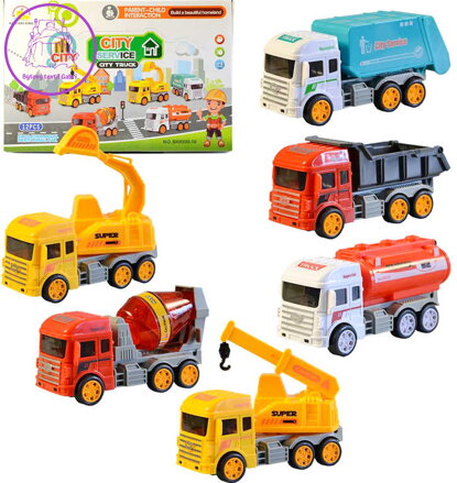 Různá pracovní a stavební autíčka z plastu na volný chod, v šesti variantách provedení. Baleno volně.