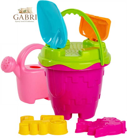 Obsah balení: formička 2ks, kyblíček, lopatička, hrabičky, konvička, sítko