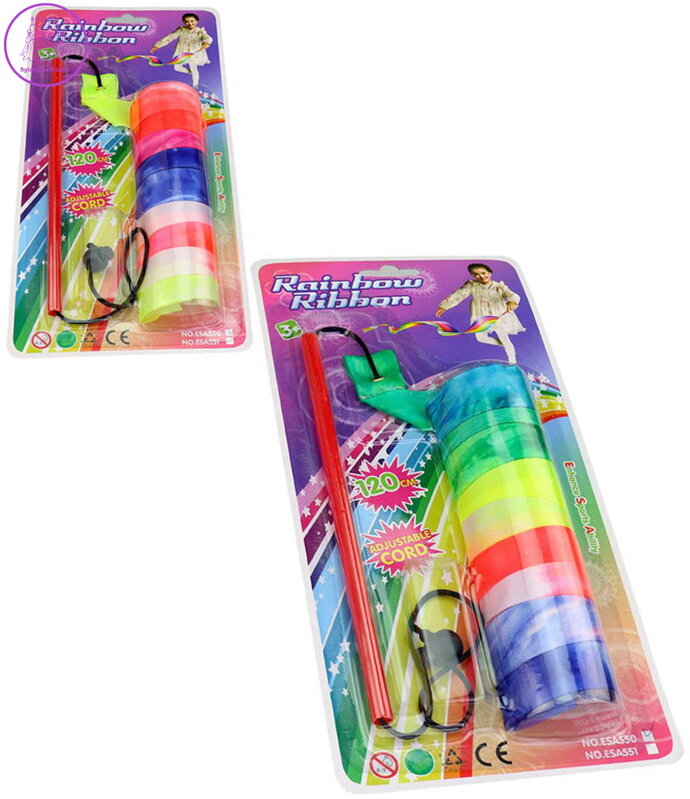 Stuha dětská gymnastická duhová 120cm s hůlkou na kartě 3 barvy Čtěte více