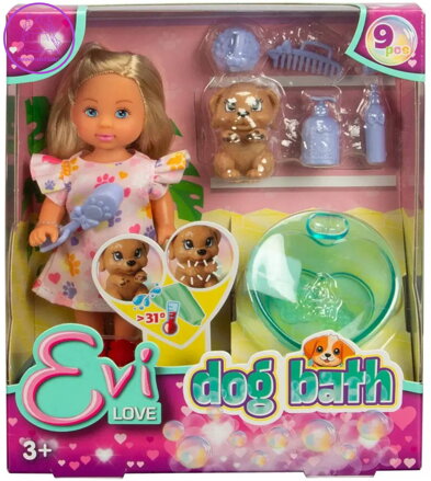 Obsah balení: panenka, vana, pejsek a další doplňky