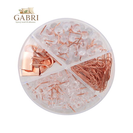 Kancelářská sada v měděné barvě.