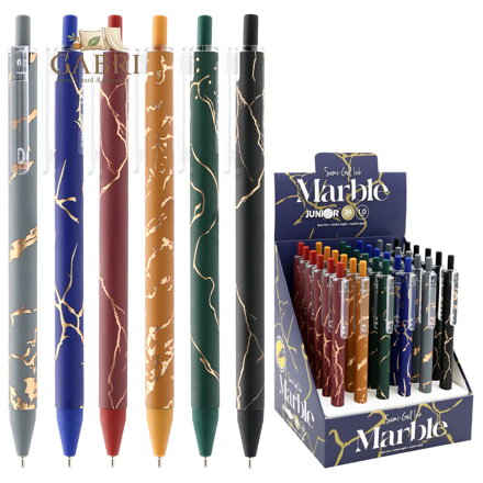 Kuličkové pero s plastovým tělem příjemným na dotek v mramorovém designu (6 barev v balení).