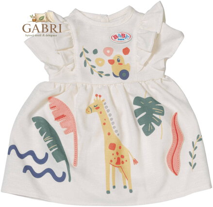 Roztomilé letní šaty s volánkovými rukávy a s motivy džungle. Vhodné pro panenky velikosti 43 cm.