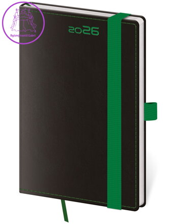 Diář 2026 týdenní kapesní diář černozelený s poutkem na pero