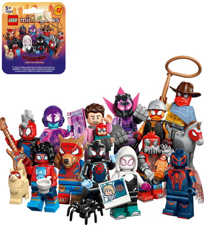 V každé krabičce s překvapením najdete 1 sběratelskou minifigurku ze světa Spider-Mana. Celkem jich můžete nasbírat 12: Miles Morales / Spider-Man, Miguel O'Hara / Spider-Man 2099, Gwen Stacyová / Spider Gwen, Hobie Brown / Spider-Punk, Pavitr Prabhakar / Spider-Man India, Miles G. Morales / Prowler, Peter B. Parker / Spider-Man a May „Mayday“ Parkerová, Margo Kessová / Spider-Byte, Peter Parker / Werewolf Spider-Man, Patrick O'Hara / Web-Slinger, Petra Parkerová / Cyborg Spider-Woman a Charlotte Webberová / Sun-Spider.