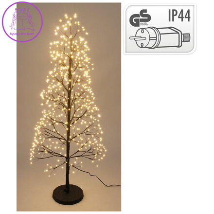 Kovový vánoční stromek na podstavci s LED osvětlením.