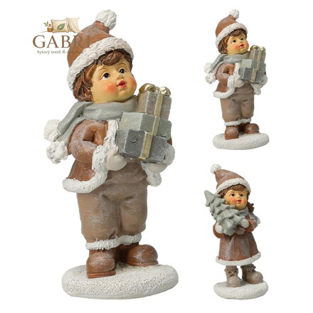 Stojící figurka chlapec držící dárek /dívka držící vánoční stromek.