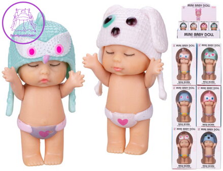Panenka miminko 8cm batole s čepicí zvířátko 12 druhů v krabičce