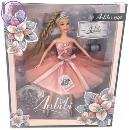 Panenka Anbibi růžové šaty dlouhé vlasy s copy set s doplňky Čtěte více
