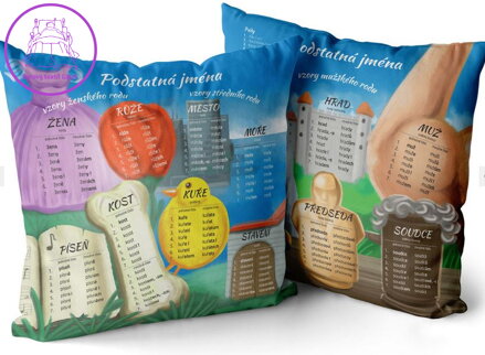 Polštářek naučný s potiskem - Vzory podstatných jmen
