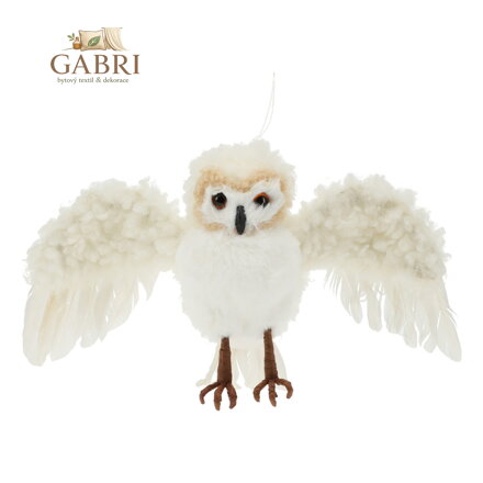 Bílá sovička s roztaženými křídly jako dekorace na zavěšení.