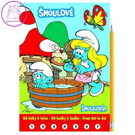 Omalovánka A5 Akim - Od tečky k tečce + tužka s gumou - Šmoulové