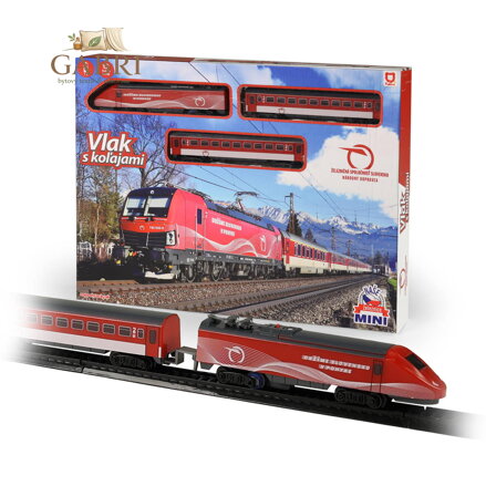 Milujete cestování vlakem? Tak sestavte koleje, postavte na ně lokomotivu, připojte vagóny a vzhůru za dobrodružstvím! Originální vlak Slovenské dráhy obsahuje lokomotivu a 2 vagónky, 8 zahnutých a 4 rovné koleje. Lze vytvořit kolejiště až do velikosti 96 x 58 cm. Rozteč kolejí je 1,4 cm. Lokomotiva měří na délku 14 cm a vagón 13,5 cm.