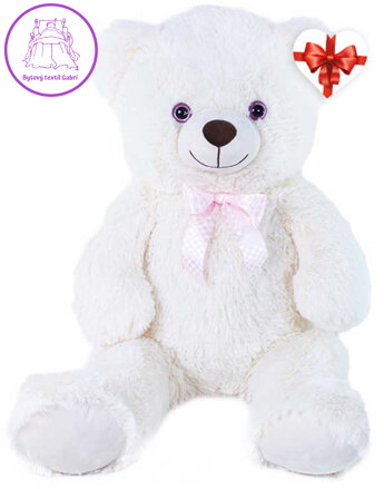 Plyšový medvěd nesmí chybět v žádném dětském pokojíčku! Medvěd ve velikosti 78 cm je vyroben z kvalitní heboučké plyše, má krémově bílou barvu a krk mu zdobí růžová saténová mašle.
