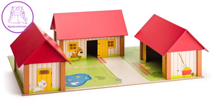 Sada obsahuje tři domky se snímatelnou střechou a hrací desku složenou ze dvou částí, které společně vytvářejí pestrou farmu plnou života. Ilustrace od české autorky s motivy zvířat, statku a přírody podněcují dětskou fantazii a vybízejí ke kreativnímu hraní.