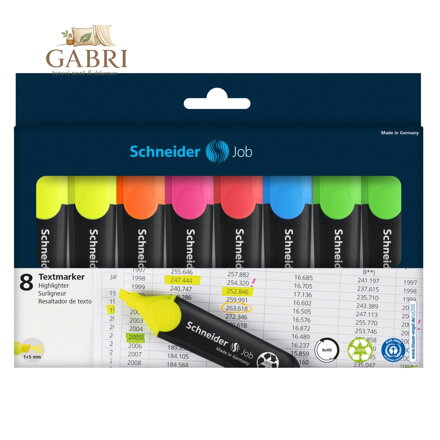 Schneider Job vysokokvalitné zvýrazňovače v sade 8 ks jediný zvýrazňovač, ktorý v Nemecku získal prestížne ocenenie Blue Angel.