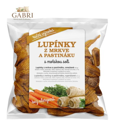 Zeleninové lupínky jsou ručně vyráběné smažené lupínky z mrkve a pastináku. Mrkev je oblíbená kořenová zelenina pro svou přirozenou sladkou chuť, obsahuje beta-karoten (provitamin A), vlákninu, vitamíny A, C a vitaminy skupiny B, minerální látky jako je draslík, vápník, hořčík, fosfor a menší množství železa, přírodní cukry a antioxidanty. Pastinák je bohatý na vitamíny C a vitamíny řady B, obzvláště B6 a kyselinu listovou, minerální látky jako je draslík, hořčík, vápník, fosfor a menší množství železa, vlákninu, antioxidanty a rostlinné silice.
