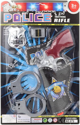 Obsah balení: pistole, pouzdro, pouta, odznak, klíčky 2ks, řemínek