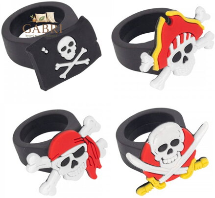 Tyto originální pirátské prstýnky vaše děti nadchnou. Jsou vyrobeny z materiálu vhodného pro dlouhodobé a odolné používání. Jsou skvělou volbou jako dárek pro děti k narozeninám. Perfektní doplněk pro slavnostní oblečení na párty, na karneval a další tematické či maškarní příležitosti.
