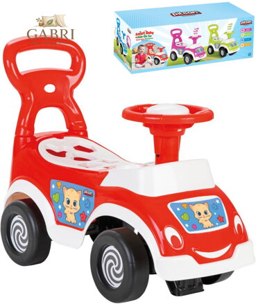 Sedací část je navržena tak, aby do ní bylo možné vkládat tvary. Mechanický klakson. Bezpečná a odnímatelná opěrka zad. Úložný prostor pod sedadlem. Stylový vzhled a ergonomický design.