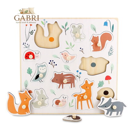 Zvířátka: ježek, srnka, zajíc, prasátko, sova, pták, beruška, veverka, myš, liška