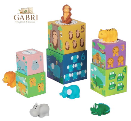 Exotická zvířátka: opička, krokodýl, slon, hroch, lev