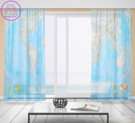 Záclony s 3D potiskem 2x150x250cm - Mapa
