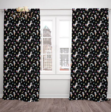 Zatemňovací závěsy tištěné black out 2x140x250cm - Unicorn