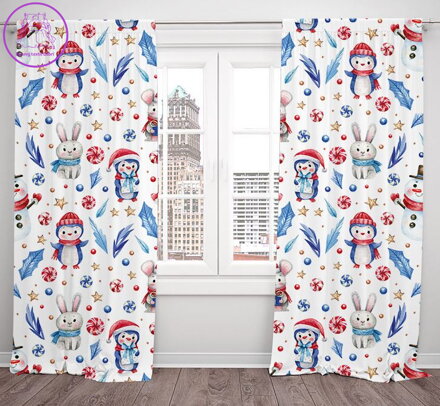 Závěsy dekorační vánoční tištěné 2x140x250cm - Zimní radovánky
