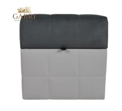 Taburet s úložným prostorem 40x40cm, v. 42cm, váha 8kg.Taburet je vyroben z odolné eko kůže ve dvoubarevném provedení, spodní část je světle šedá a horní část tkanina casablanka grafit. Eko kůže je odolná proti oděru a velmi snadno se udržuje.Taburet byl vyroben z pevných a kvalitních komponentů, které zajistí používání sedačky na několik let. Váha 8kg.
