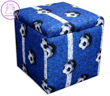 Taburet s úložným prostorem kostka Fotbal modrý