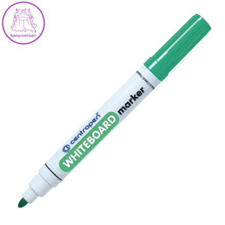 Stíratelný popisovač na bílé smaltované tabule, PVC, sklo, porcelán. Inkoust je za sucha stíratelný, světlostálý, Náplň je zdravotně nezávadná. Oválný hrot s průměrem 5 mm, šírka stopy 2,5 mm. Skladujte ve vodorovné poloze. Barva zelená.